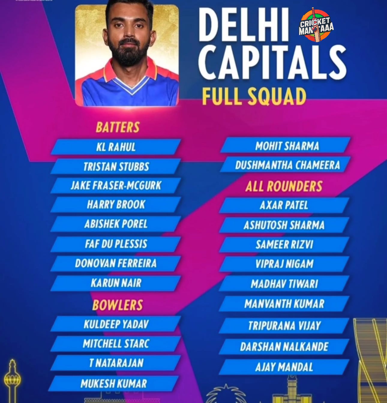 - Key Players Bought: KL Rahul, Harry Brook, Jake Fraser McGurk, Faf Du Pressis