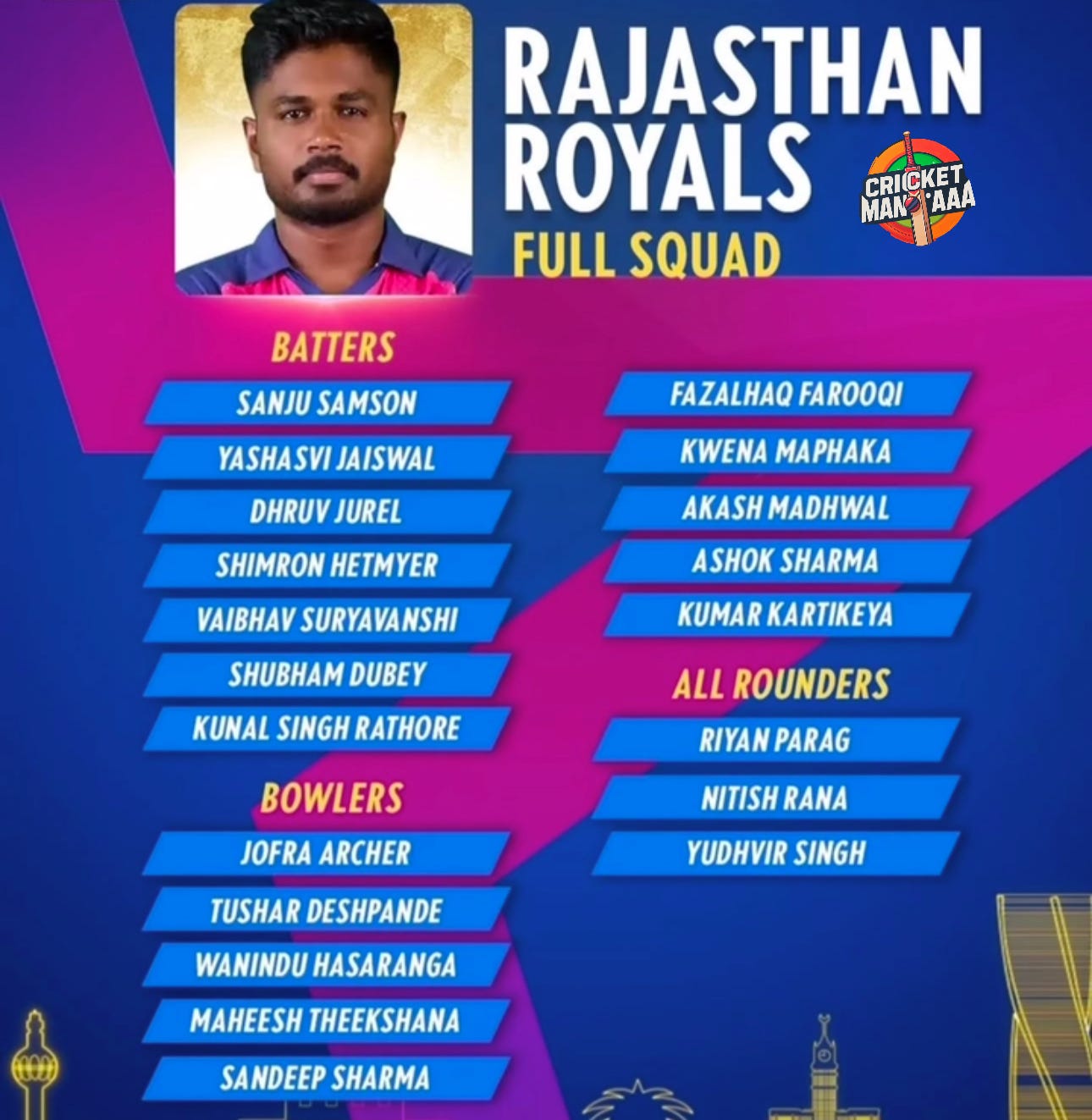 - Key Players Bought: Vaibhav Suryavanshi, Jofra Archer